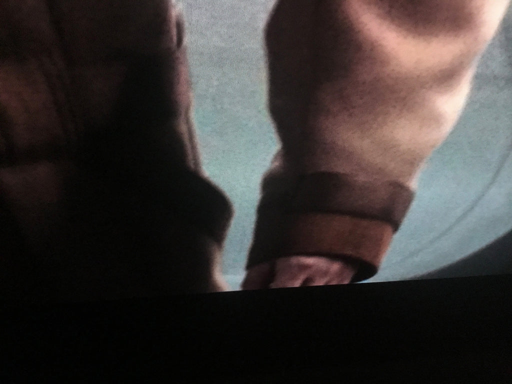 - Cuffs Style: Open hem with vertically aligned decorative metal studs in brass, and with brown suede piping across the hem (as per mock & references)