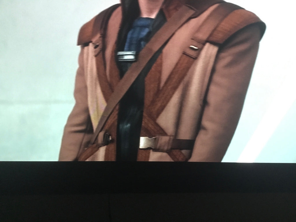- Brown suede piping across the front torso in cross shape, and back torso (as per mock & references)