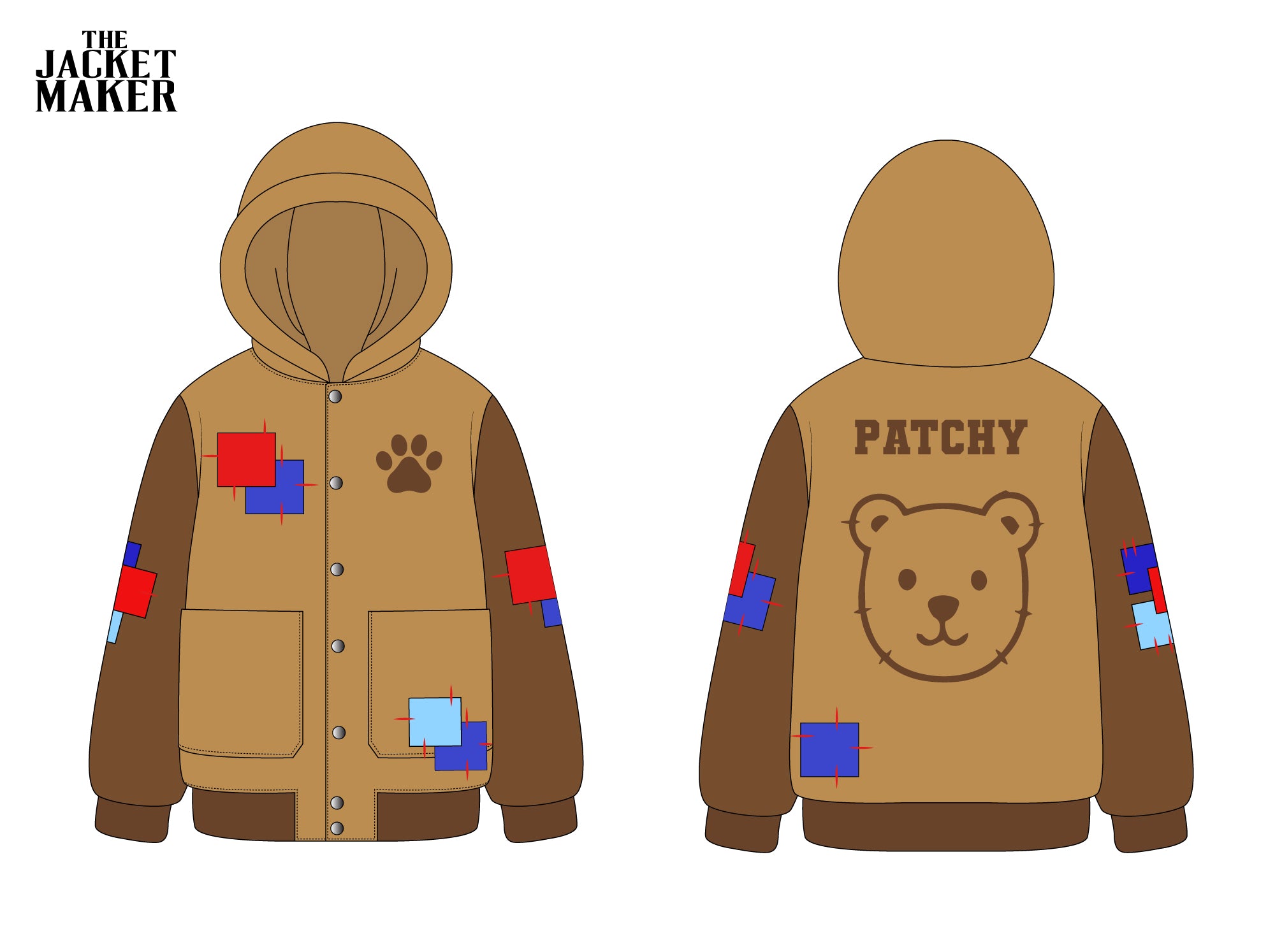 • Decorative fabric patches on the jacket as per mock