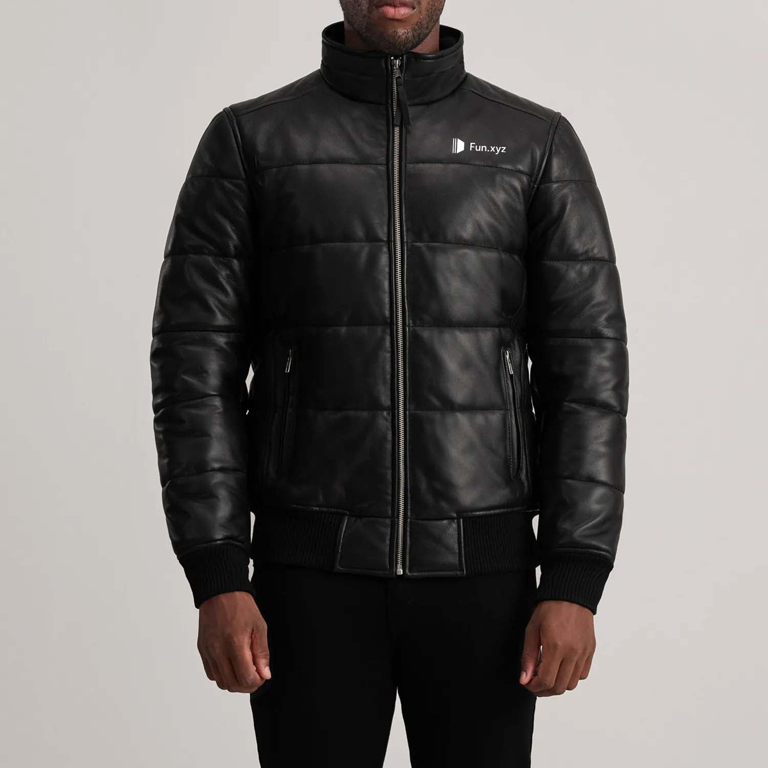 Lucas Black Leather Puffer Bomber Jacket with the customizations you’ve outlined: